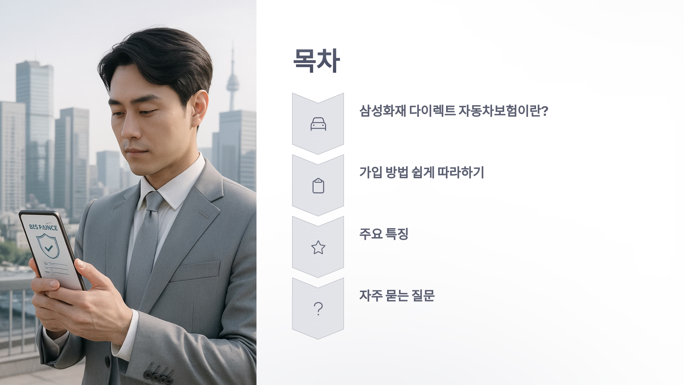 삼성화재 다이렉트 자동차보험에 대해 궁금한 모든 것을 쉽게 정리했어요. 간편하게 가입하고, 다양한 할인 혜택까지 누릴 수 있는 방법을 안내합니다. 빠르게 보험을 준비하고 싶다면 꼭 읽어보세요!