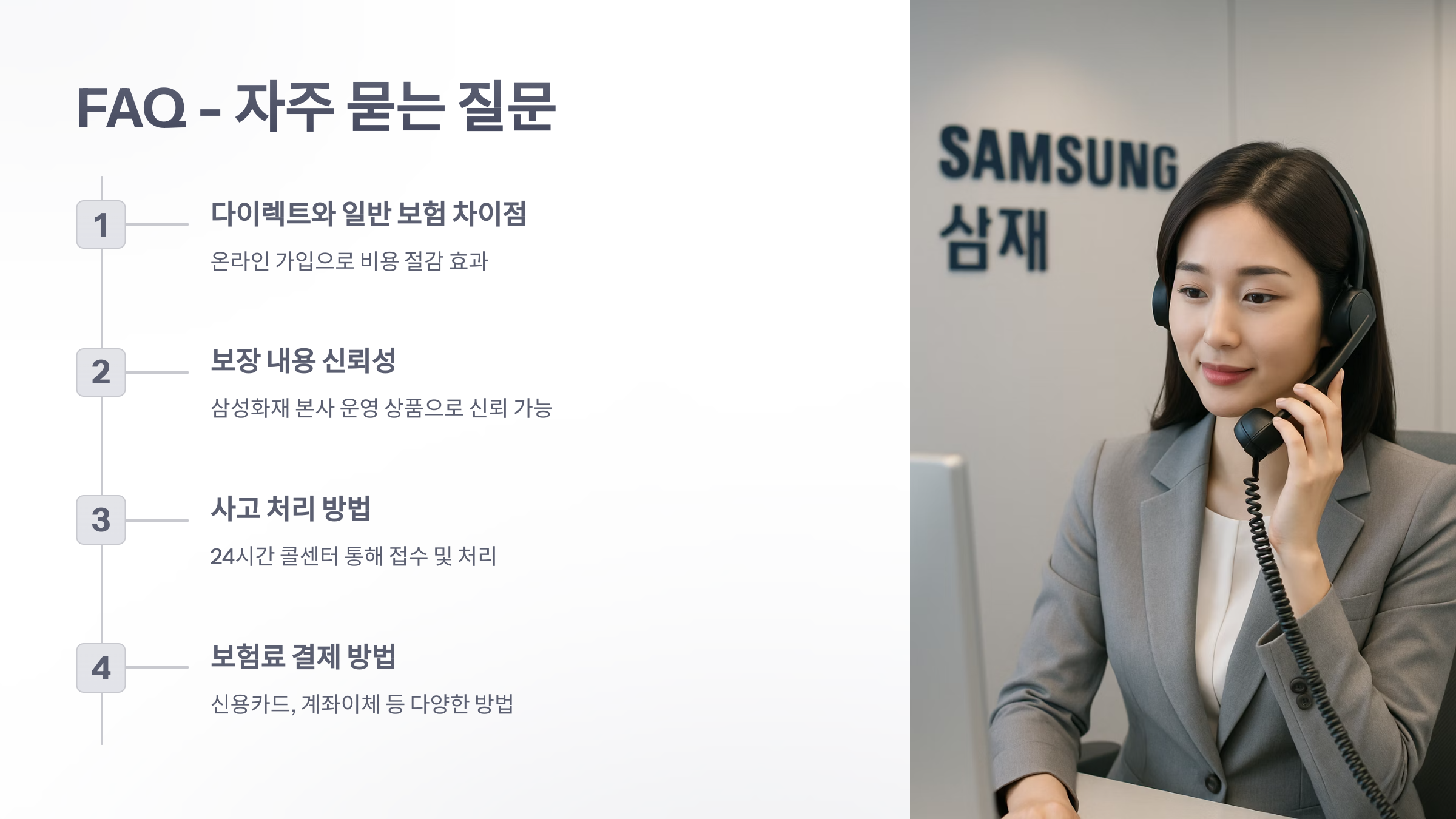Q1. 삼성화재 다이렉트와 일반 자동차보험은 무엇이 다른가요?