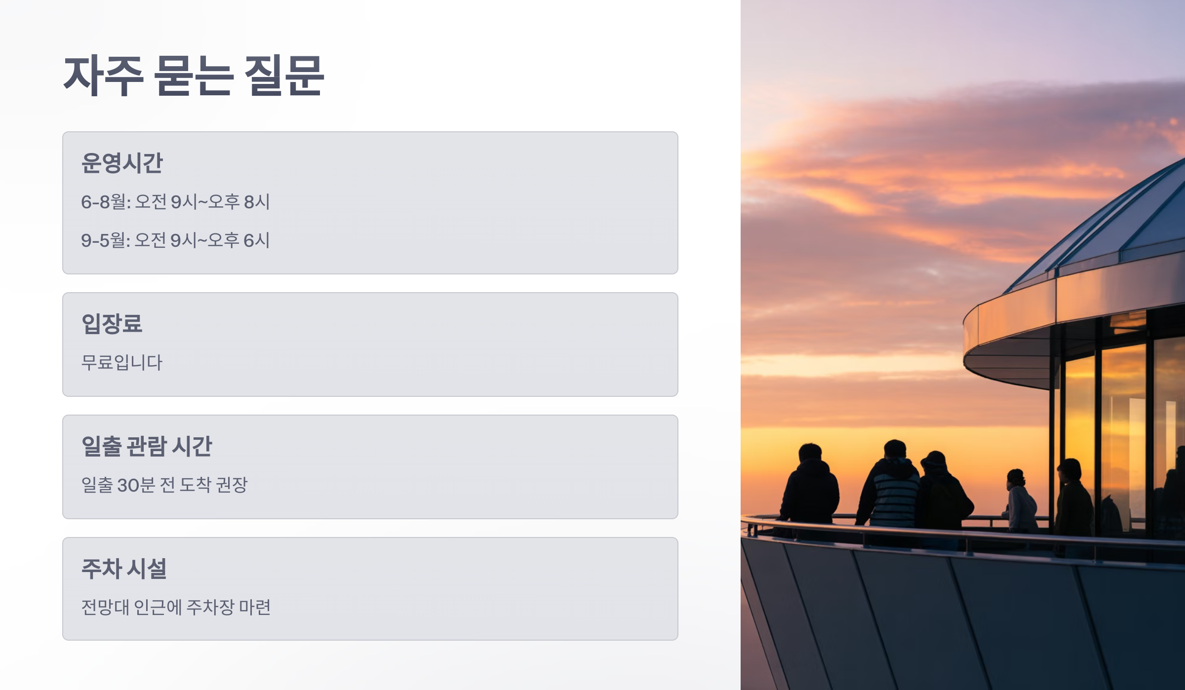 전망대에서 일출을 보려면 몇 시에 가야 하나요?