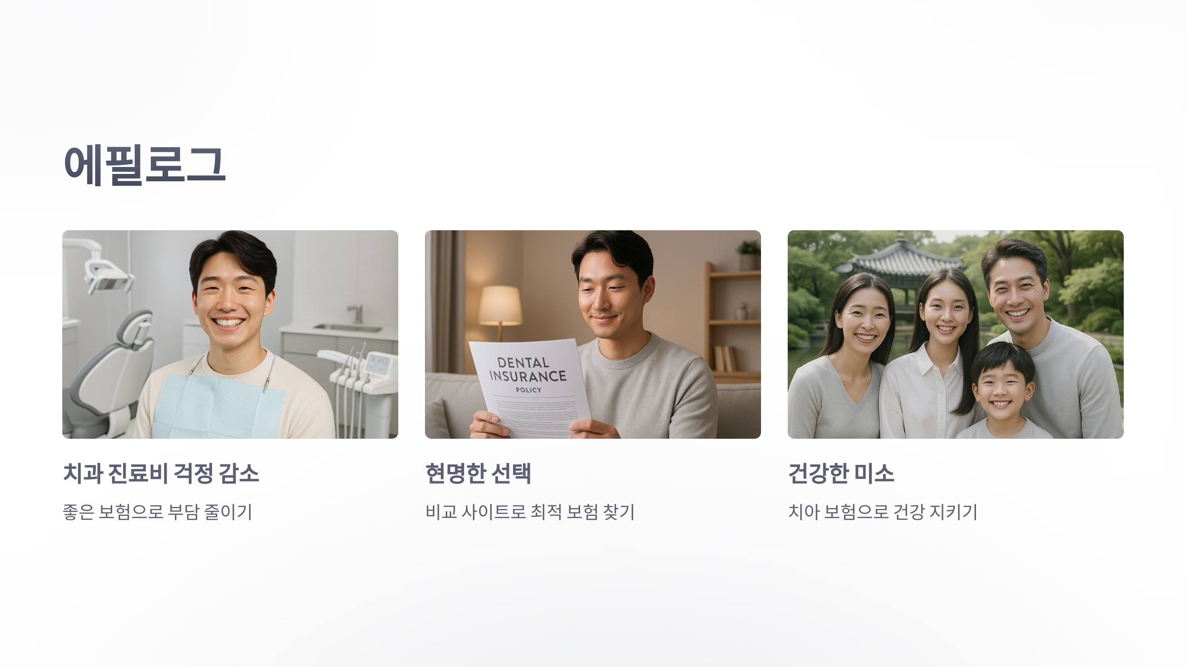 - 보장 항목: 충치, 임플란트, 스케일링 등 어떤 치료가 보장되는지 확인하세요.