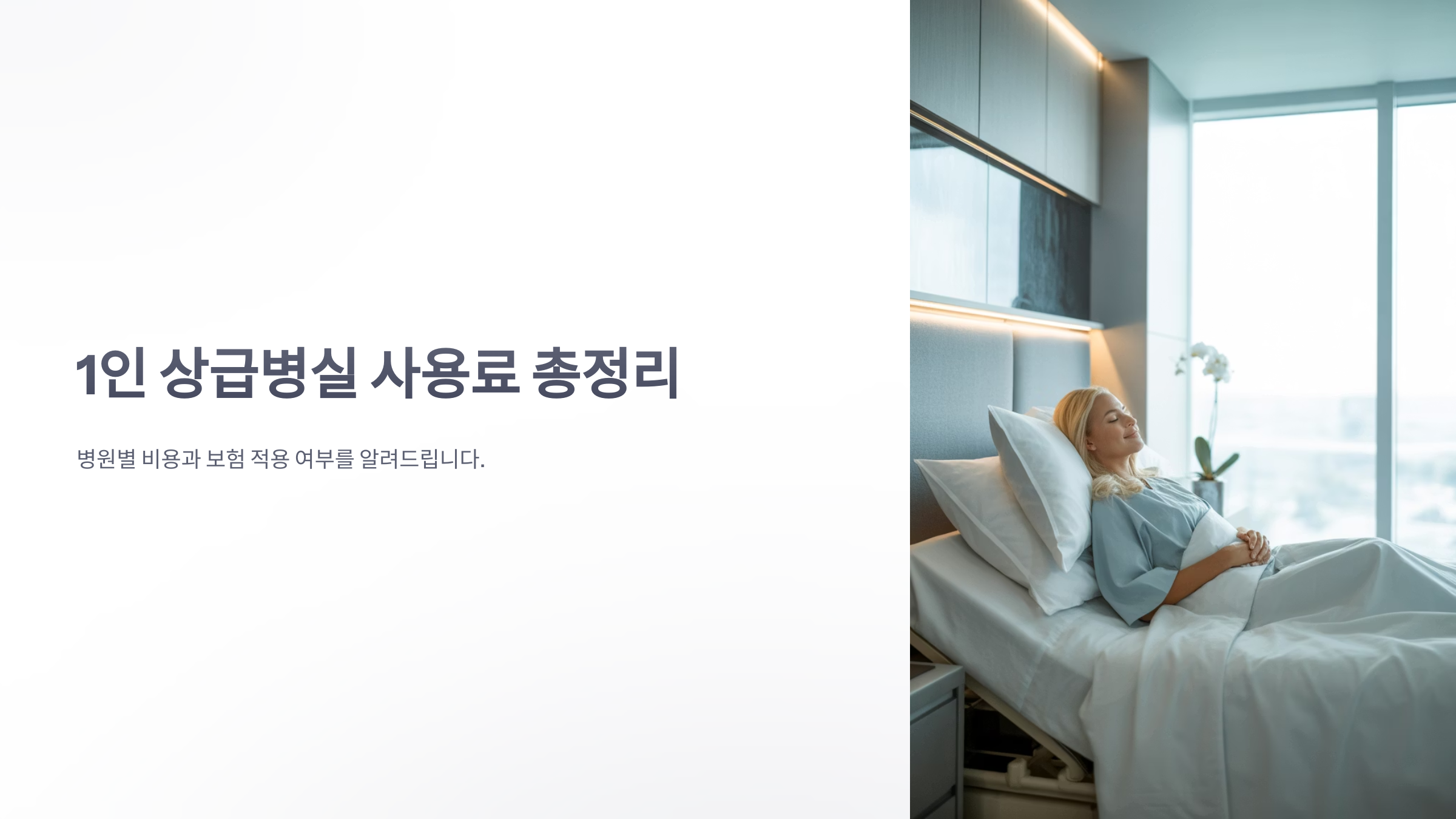 1인 상급병실,상급병실 사용료,병실 비용 비교,병원별 1인실 비용,건강보험 적용,실손보험 보장,입원 전 체크리스트,병실 예약,프라이버시 보호,감염 예방,집중 치료,병실 시설,병실 환경,병원 입원 안내,병원 비용 안내,병실료,상급병실 차액,입원 비용,병원 선택,병실 선택